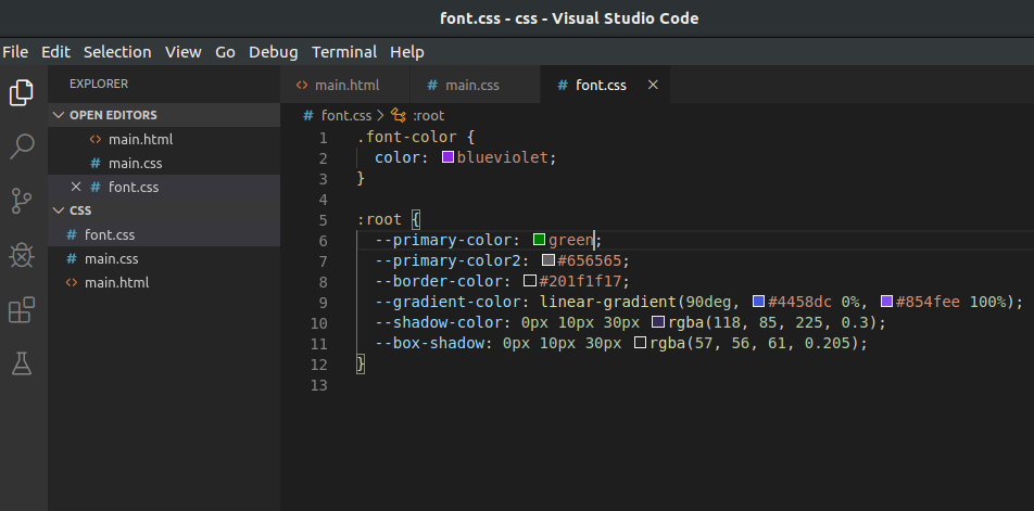 Instead create a CSS file called root (thats what i prefer to do,you can do as you want) and declare some CSS variables. Yes! you read it right, You can declare CSS variables like this:-